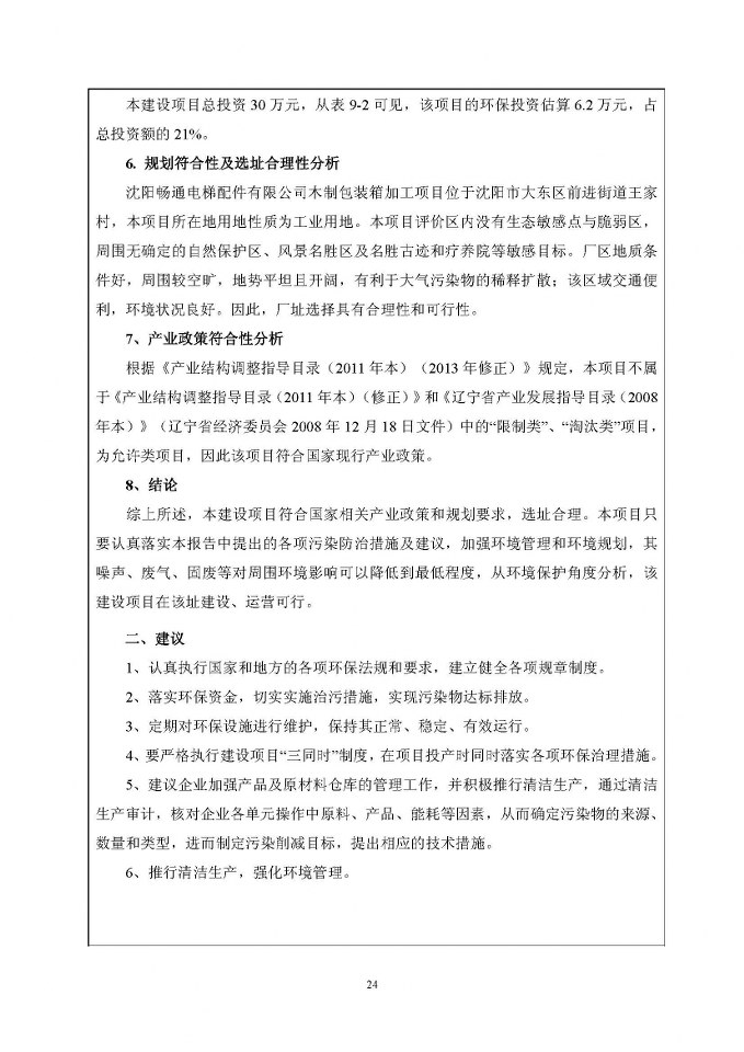 沈陽暢通電梯配件有限公司木制包裝箱加工項目