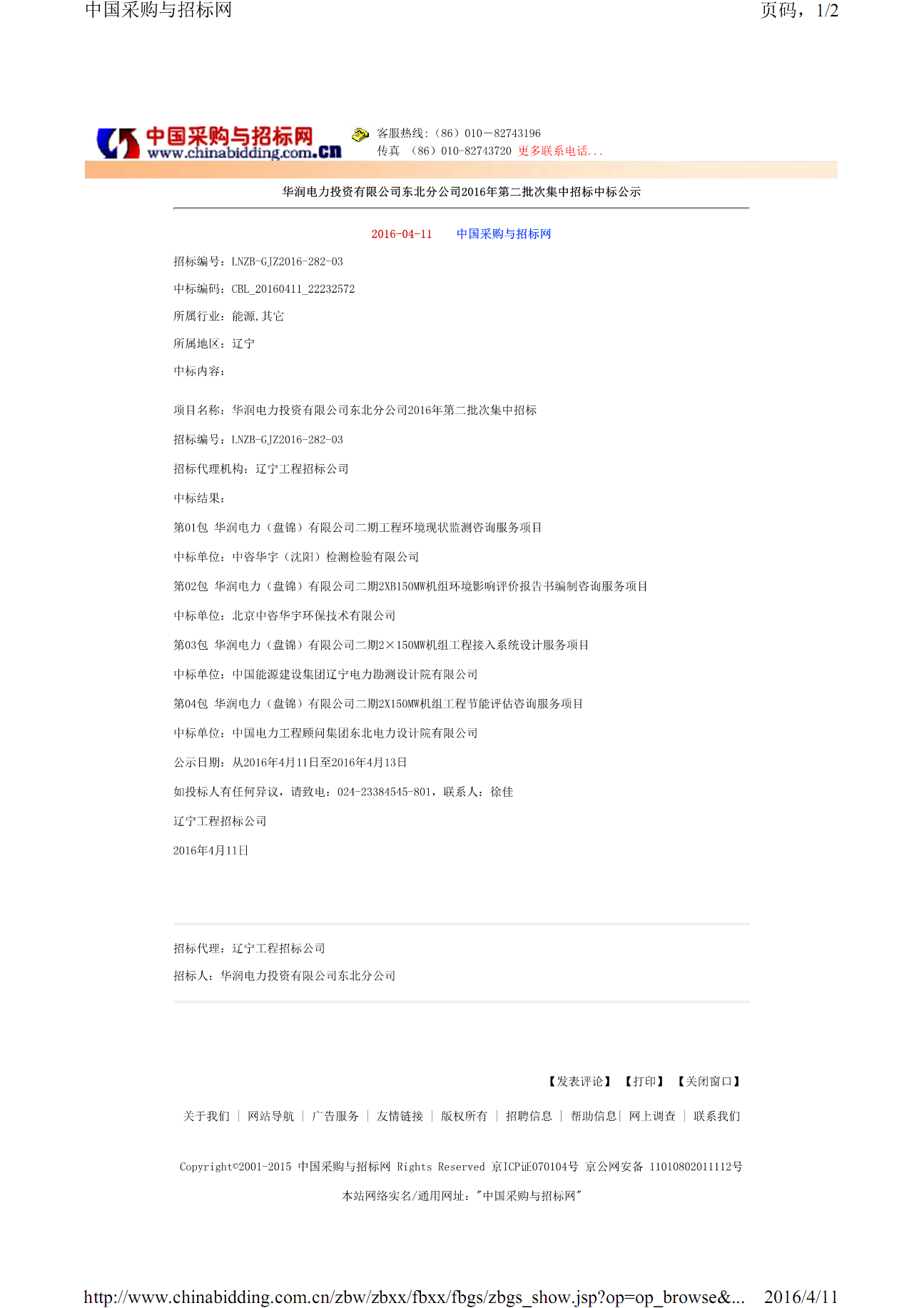 近日,在華潤電力投資有限公司東北分公司實施的“華潤電力(盤錦)有限公司二期XB150MW機組環境影響評價報告書編制咨詢服務項目及華潤電力(盤錦)有限公司二期工程環境現狀監測咨詢服務項目”我們一舉中標。